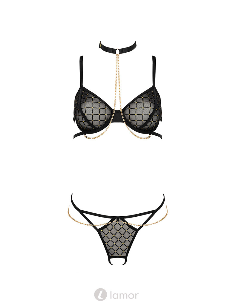 Zwart-Goud BH & Ouvert String met Kettingen van het merk Kotek