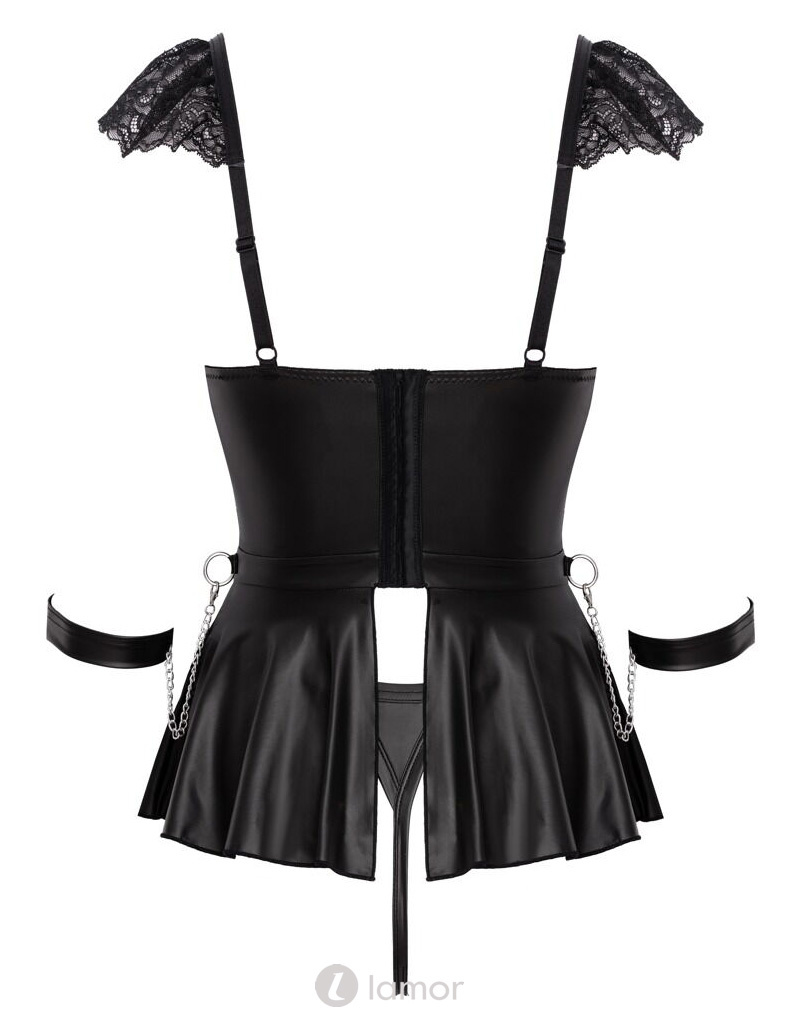 3-delige Babydoll set,Babydoll, Ouvert-snaar en zachte handboeien