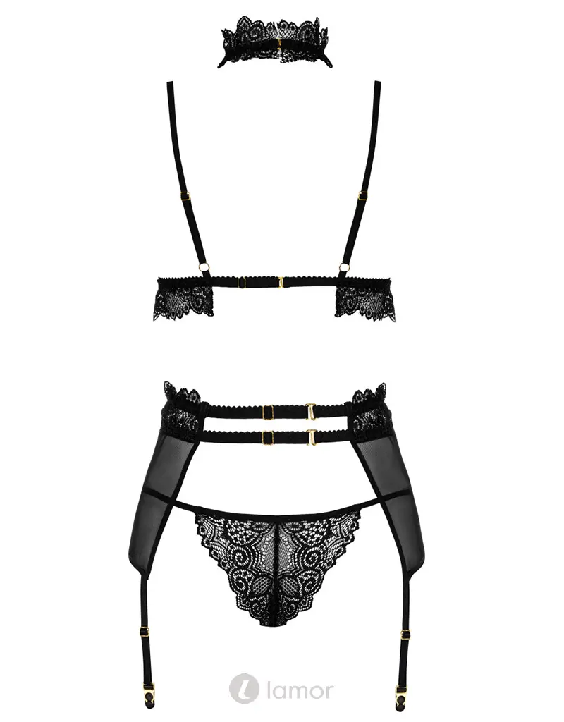Beauty Night Velvet Sin 3-delige zwarte lingerieset