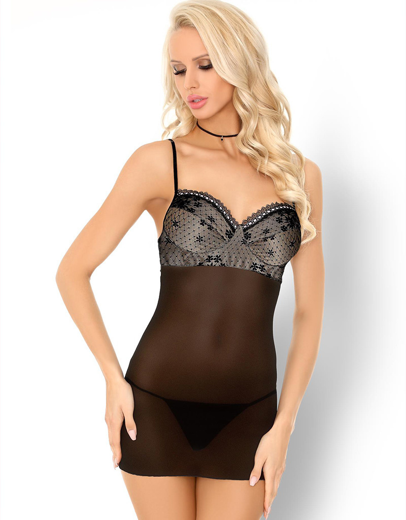 Deze sexy babydoll is gemaakt van zacht tule, kant en elegant satijn. Het model heeft een duidelijk gemarkeerd cup-gedeelte, hierdoor laat je de buste perfect zien. De achterzijde wordt extra spannend gemaakt door de schitterende kanten rand en vetersluiting. De babydoll wordt geleverd met bijpassende string