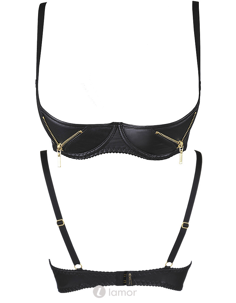 Verleidelijke Lederlook Beha met open cup en ritsjes, AX9871-B