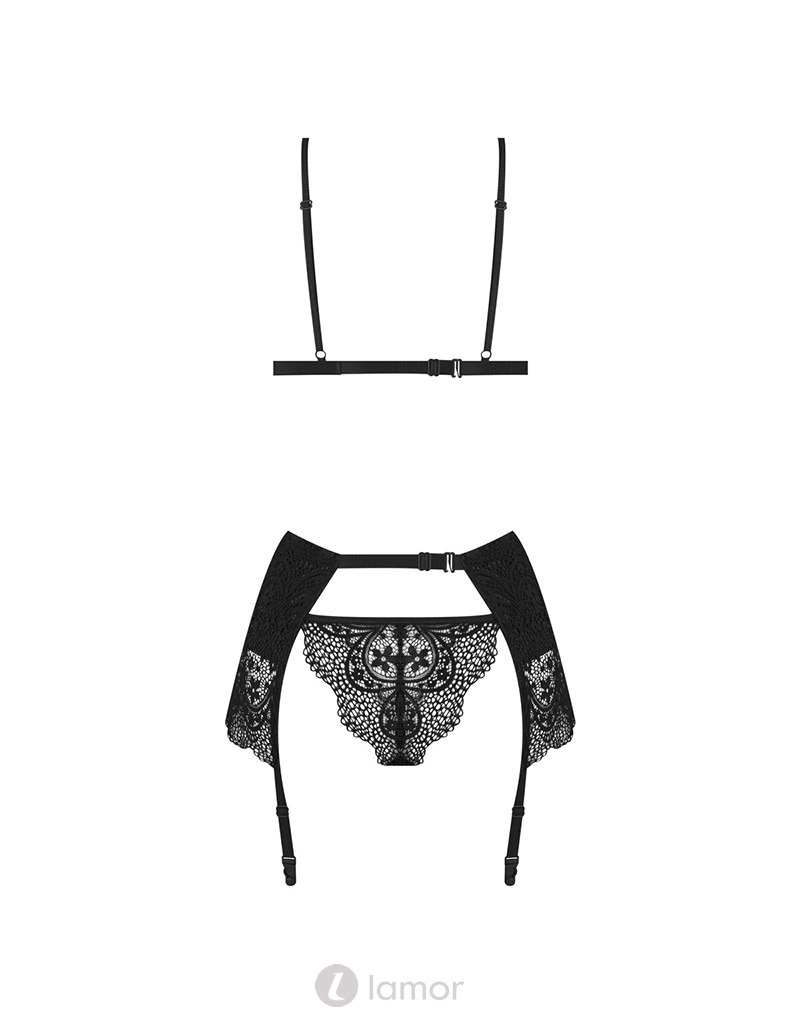 Sexy zwart 3-delige lingerie set Obsidian Desire van wetlook en kant
