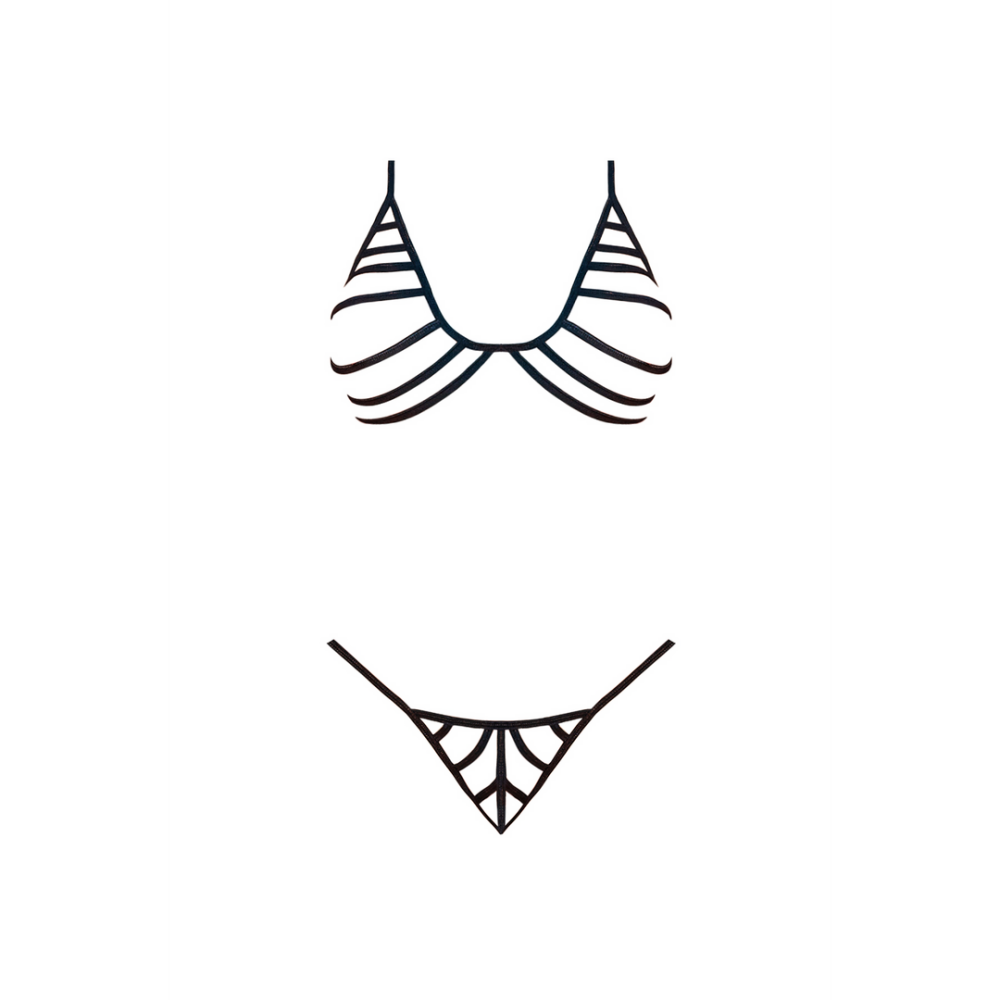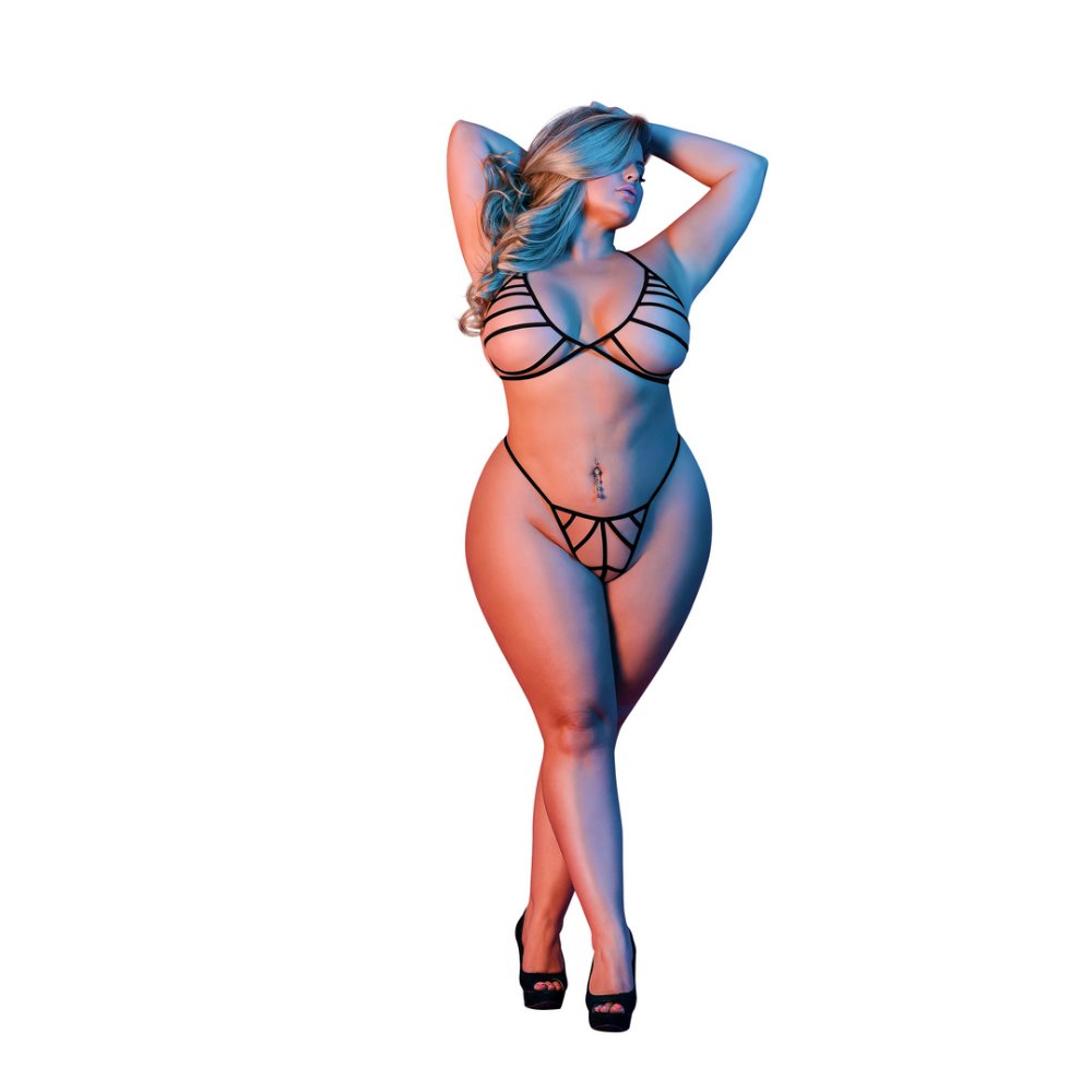 Beha en G-string Set met Bandjes - 2X - Zwart