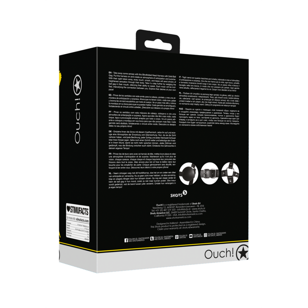 Blindfolded Head Harness met Solid Ball Gag - Zwart