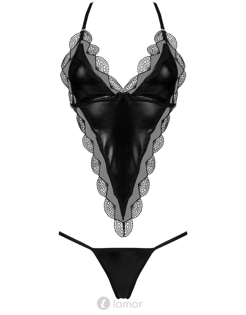 Spannende 2-delige lederlook set van lederlook en kant