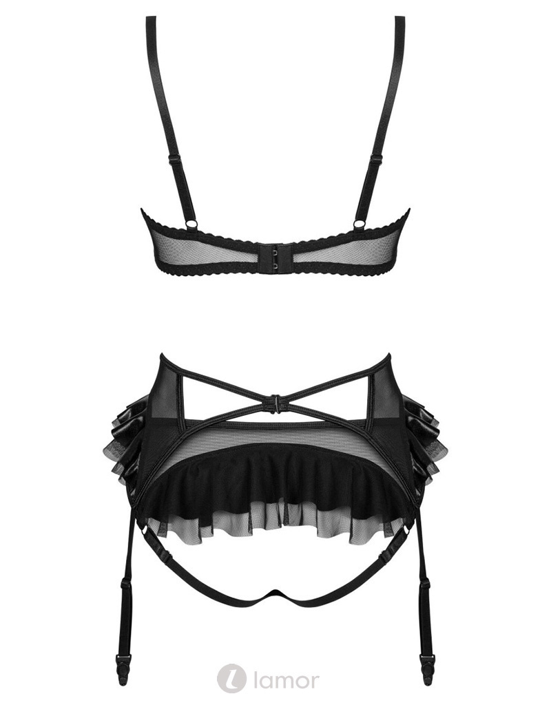 Sexy zwart 3-delige lingerie set Rafaella van latexlook en kant