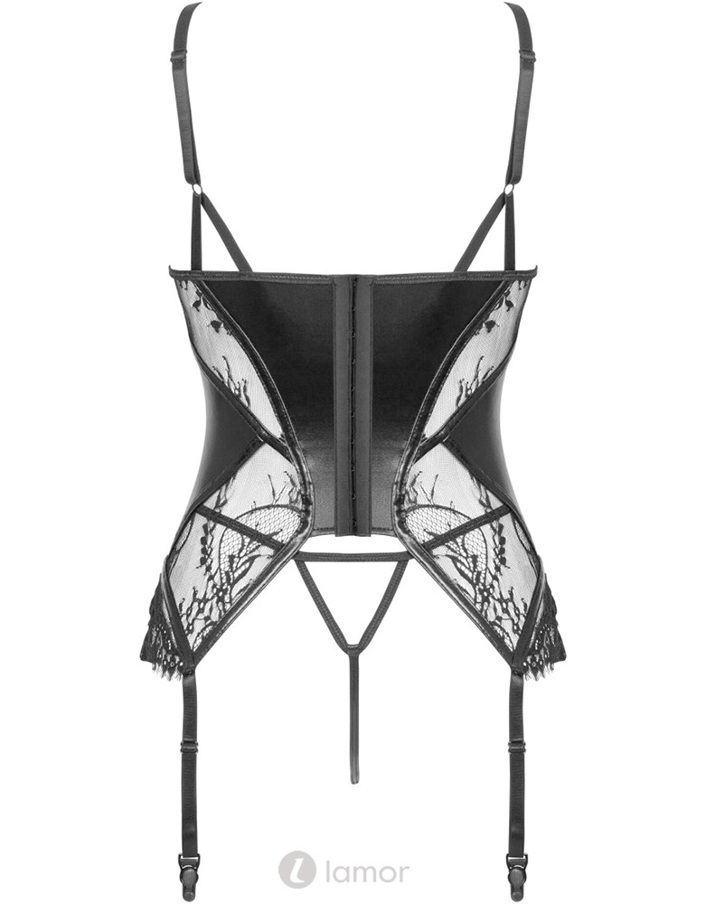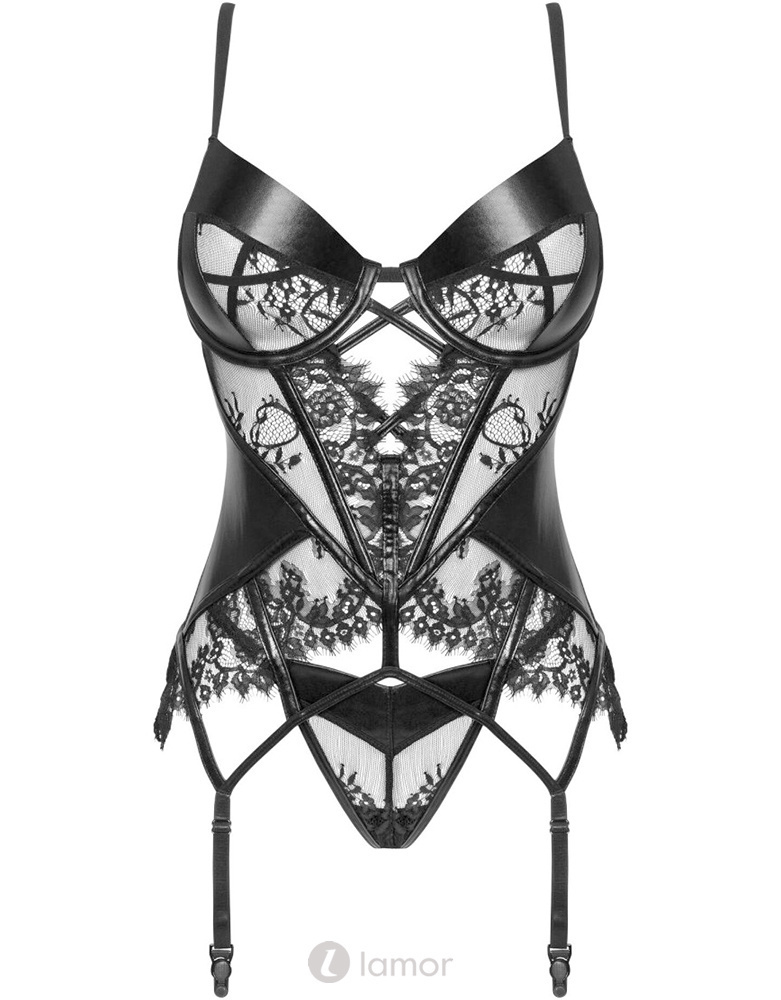 Sexy Jarretelkorset Leonela van een lederlook materiaal en kant
