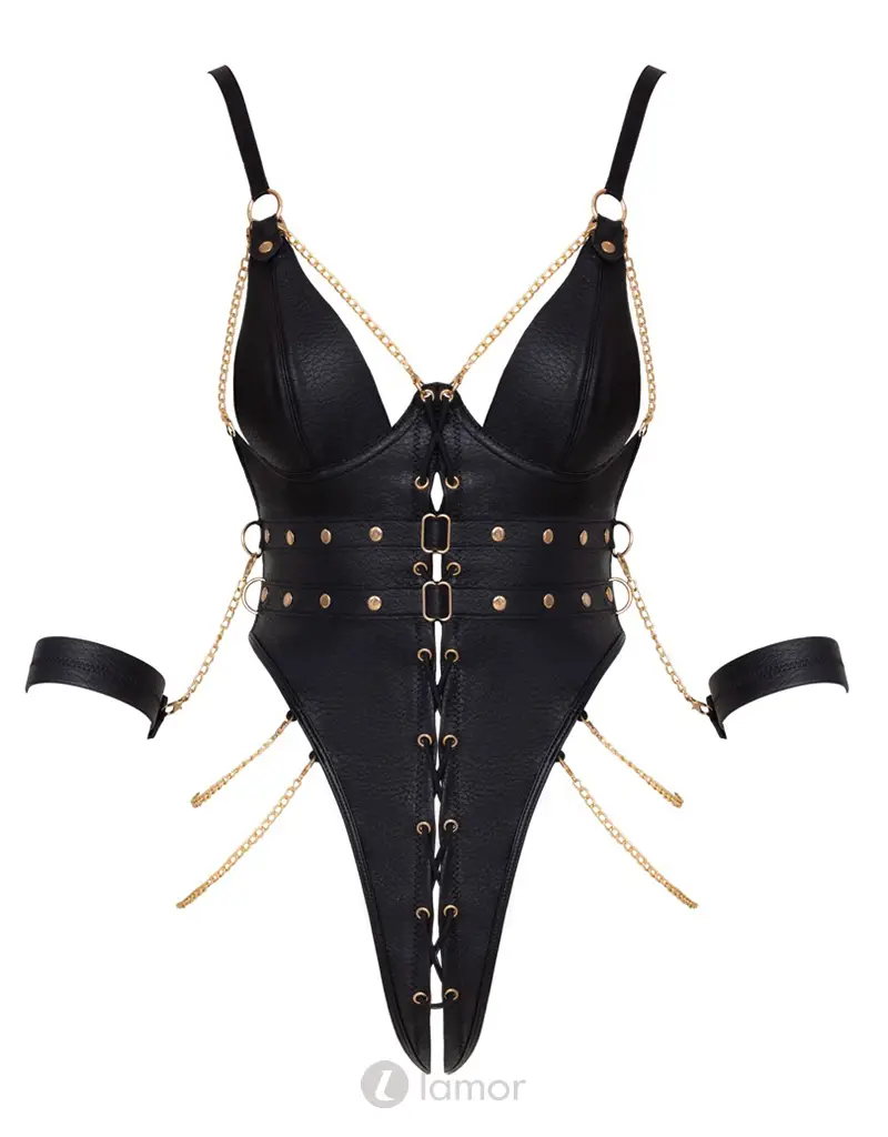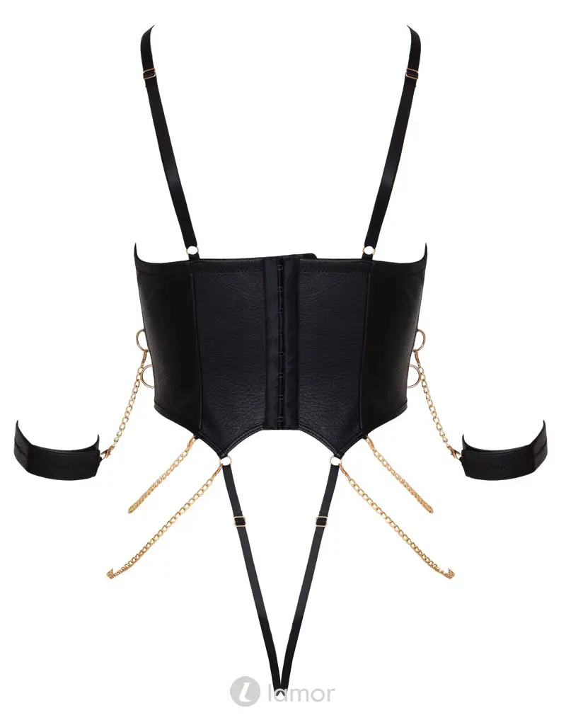 Cottelli Bondage body imitatieleer met kettingen en manchetten zwart