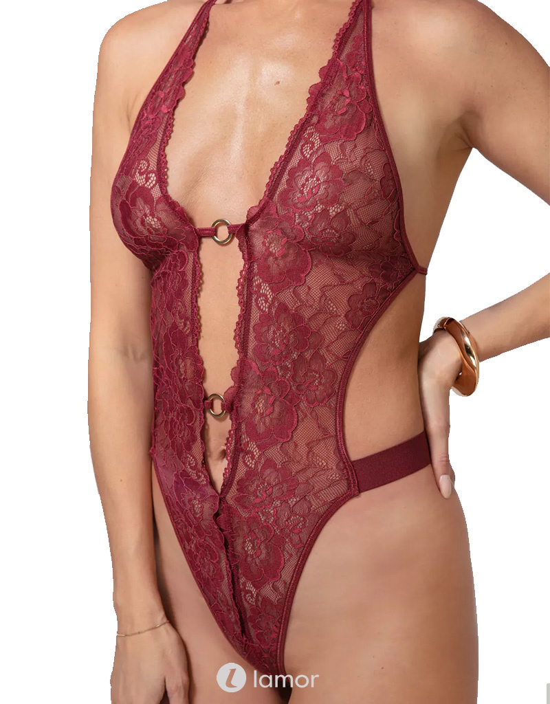 Bordeaux rode open kruis Body, Basic Instinct van Kim x Christine