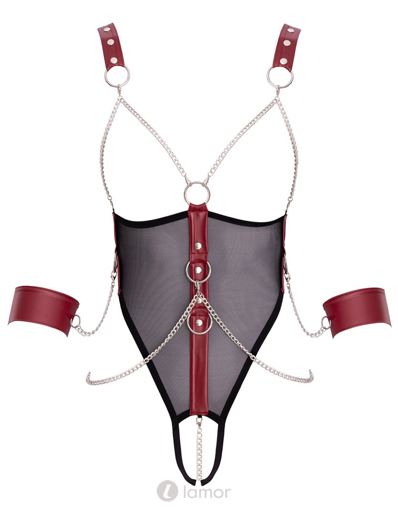 Busvrij body ouvert van Cottelli BONDAGE inclusief zachte handboeieny
