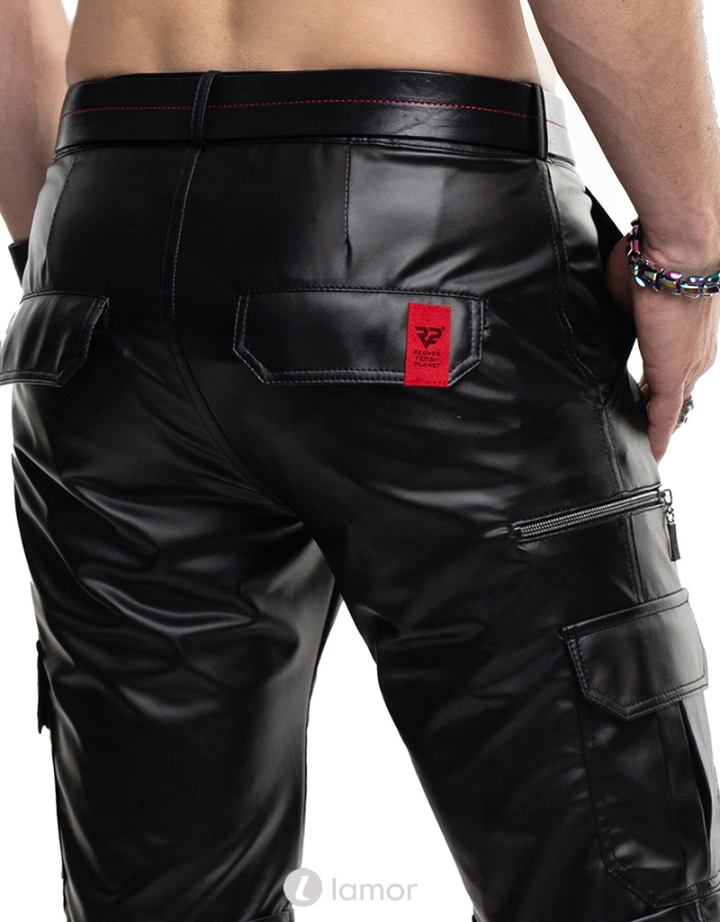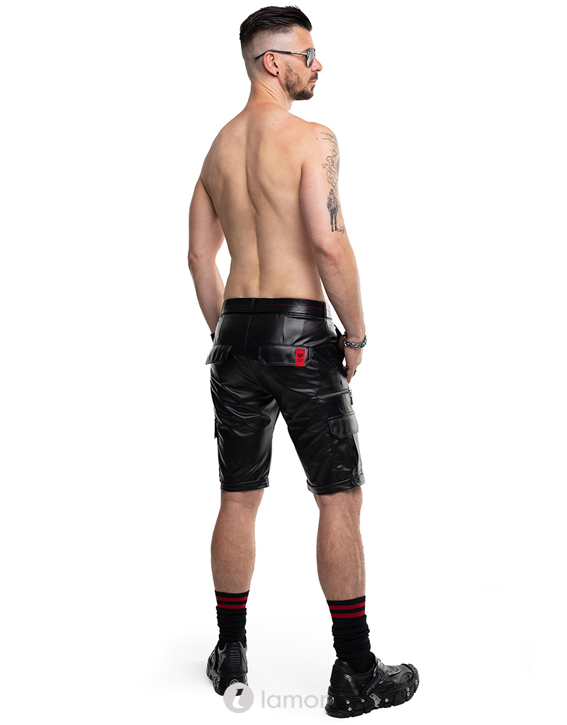 Stoere Cargo Wetlook Shorts met 8 zakken en rode details van het merk RFP