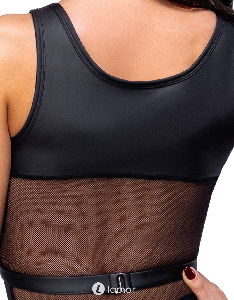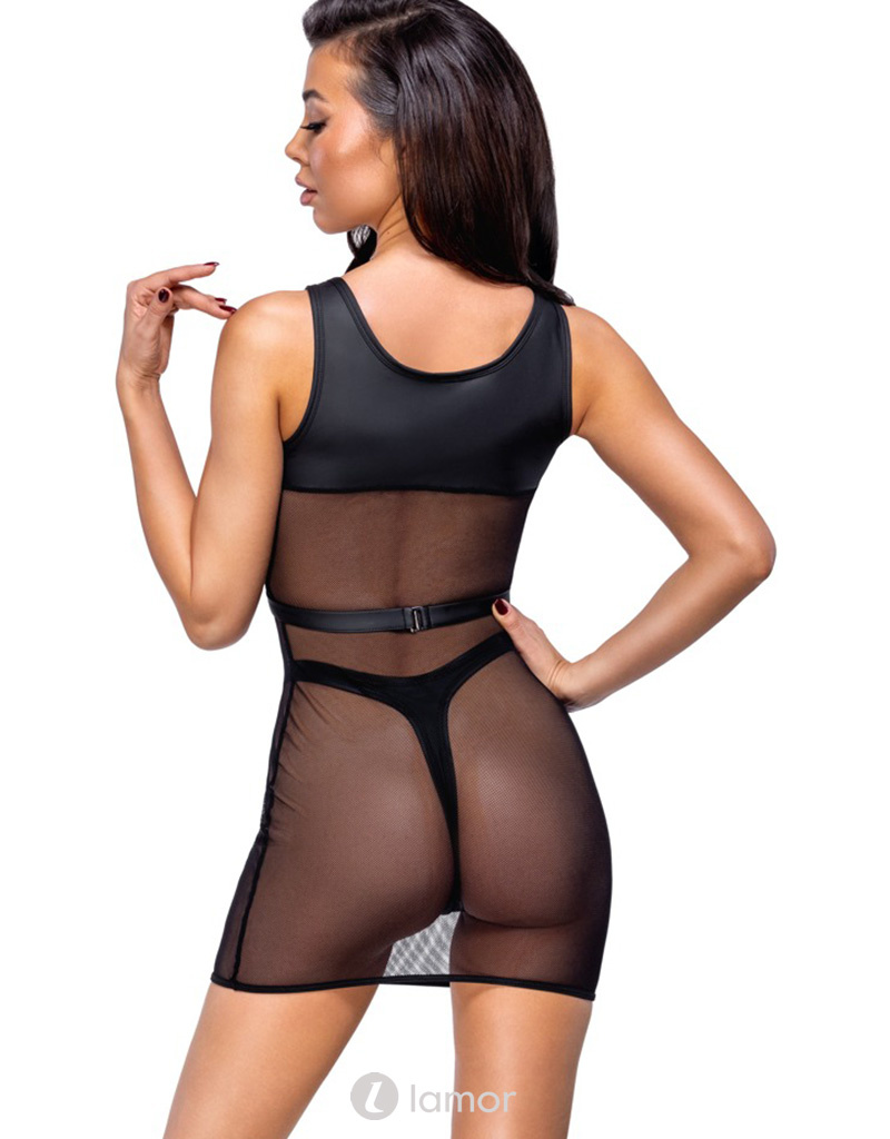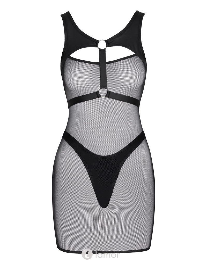Cottelli Net-Minikleed & Hoge Rio-String in Set – Zwart Netstof met Ingezet Mattlook Borstharnas & Decoratieve Ringen – Verleidelijk & Comfortabel