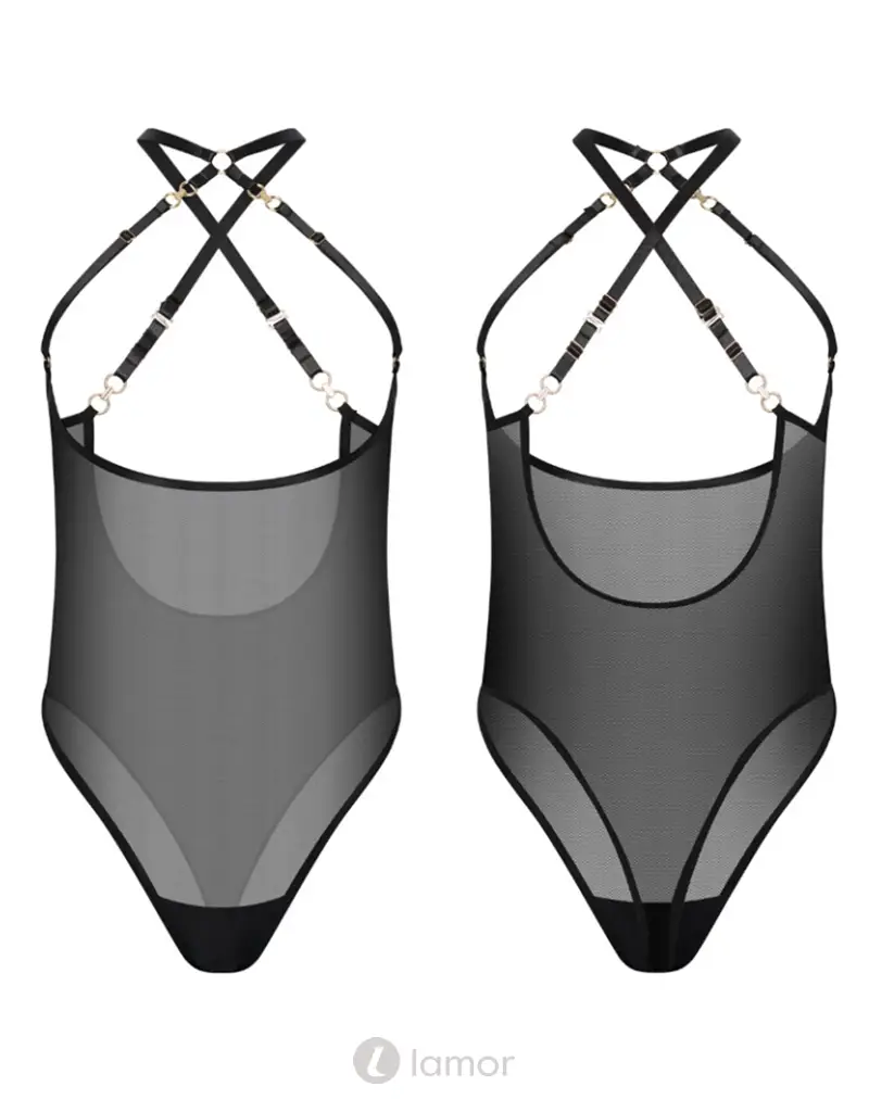 Kinky Diva Coquette Cupless Mesh Body Zwart Goud O/S