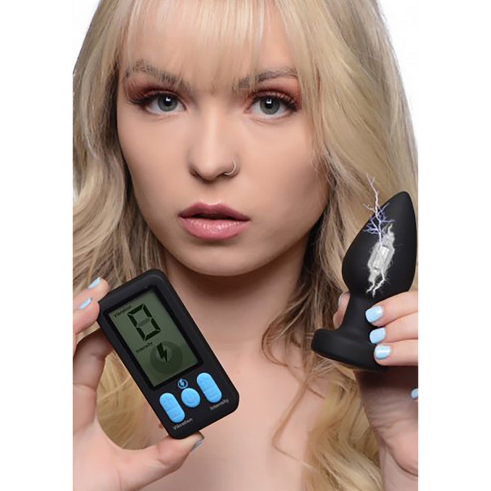 Deze traditioneel gevormde siliconen anaalplug verbergt een opwindend geheim! Geniet van de wereld van electro spelen zonder dat je een powerbox, draden of elektroden nodig hebt met dit handige alles-in-één anale pakket. Deze premium vibrerende E-Stim siliconen anaal plug is het toppunt van schokkend anaal spel - vervul je verlangen naar anale vulling terwijl je geniet van prikkelende elektrische schokken diep in je gat!Kies uit 5 vibratiefuncties en 5 elektrische stimulatiefuncties om je kont te plezieren! Geniet afzonderlijk of samen van zowel schokkende als vibrerende functies en vind wat het beste bij je anale speelstijl past. Gebruik deze siliconen shocker terwijl je met je partner speelt om een elektrische twist toe te voegen aan je dubbele penetratie plezier, of gebruik deze plug alleen en verbeter je persoonlijke tijd met een kinky zap in je kont!Zeus E-Stim Pro speelgoed is voorzien van een draadloze controller met een groot, goed afleesbaar display, zodat je precies kunt zien welke vibratie- en schokintensiteit momenteel actief is. Perfect voor het vinden van de ideale combinatie van vibraties en schokken om uw plezier tot een hoogtepunt te brengen!Elk premium aanbod in de Zeus E-Stim Pro-lijn is oplaadbaar via de meegeleverde USB-oplaadkabel en is gemaakt van fluweelzachte siliconenmaterialen die ftalaatvrij zijn en latexvrij voor een lichaamsveilige ervaring. De luxueuze siliconenmaterialen zijn alleen compatibel met glijmiddelen op waterbasis.