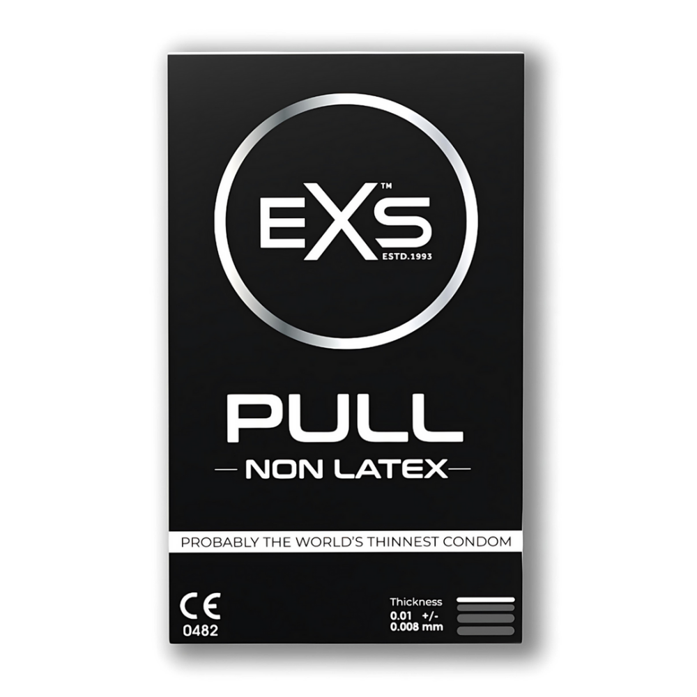 Introductie van de volgende generatie latexvrije condooms: EXS Pull. Geniet van verhoogde gevoeligheid en gemoedsrust met EXS PULL Condooms. Onze dunste condooms tot nu toe zijn opmerkelijk sterk en zijn ontworpen om genot te maximaliseren terwijl ze beschermen tegen ongewenste zwangerschappen en seksueel overdraagbare infecties, waaronder HIV. Uniek ontworpen, bieden deze condooms een revolutionaire 'strip systeem' technologie om veilig op de huid te rollen voor een snug en comfortabele pasvorm, waardoor intimiteit wordt verbeterd zonder in te boeten op veiligheid. Gemaakt van hypoallergene non-latex, bieden EXS PULL Condooms een bijna niet-voelbare ervaring die de sensatie voor beide partners versnelt. Vooraf gelubriceerd met een op siliconen gebaseerde formule, vergemakkelijken ze een naadloze glijding, perfect voor vaginale, orale en anale geslachtsgemeenschap. Zonder rubberachtige geur of smaak, bieden deze condooms een discrete en plezierige ervaring zonder afleidende geuren of smaken. Compatibel met alle op water of siliconen gebaseerde sensuele glijmiddelen, voldoen ze aan diverse voorkeuren en verlangens. Toegewijd aan veiligheid en tevredenheid, ondergaan alle EXS Condooms strenge tests om aan de Europese normen te voldoen.