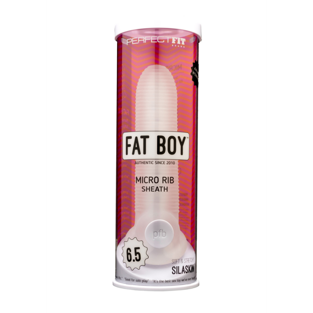 Beschrijving We zijn verheugd om de nieuwe Fat Boy(TM) Micro Rib Sheath in drie maatopties met geheel nieuwe verpakking te introduceren. Zoals onze originele Fat Boy(TM) cock sheath, maar met een nieuwe textuur. Voegt merkbare dikte toe aan je cock zonder dat het te veel is voor je partner. Gemaakt van superzacht en rekbaar SilaSkin(TM), is het ontworpen om beide partners intense, opwindende genot te geven. Grondig wassen met milde zeep en water.