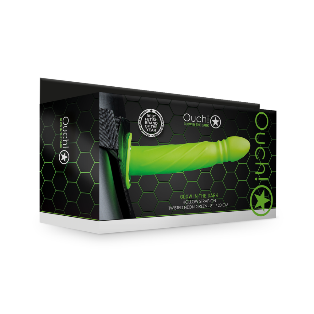 Glow in the Dark Twisted Hollow Strap-On - 8 / 20 cm - Neon Groen