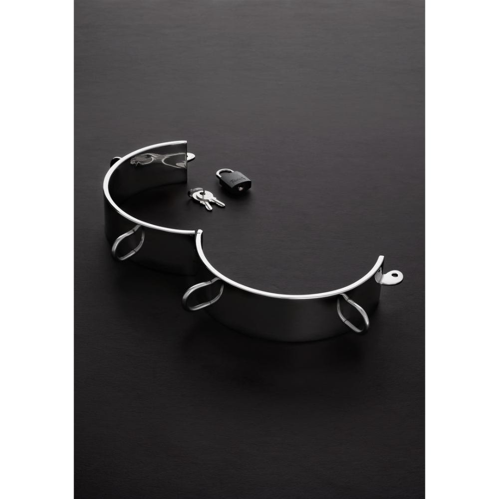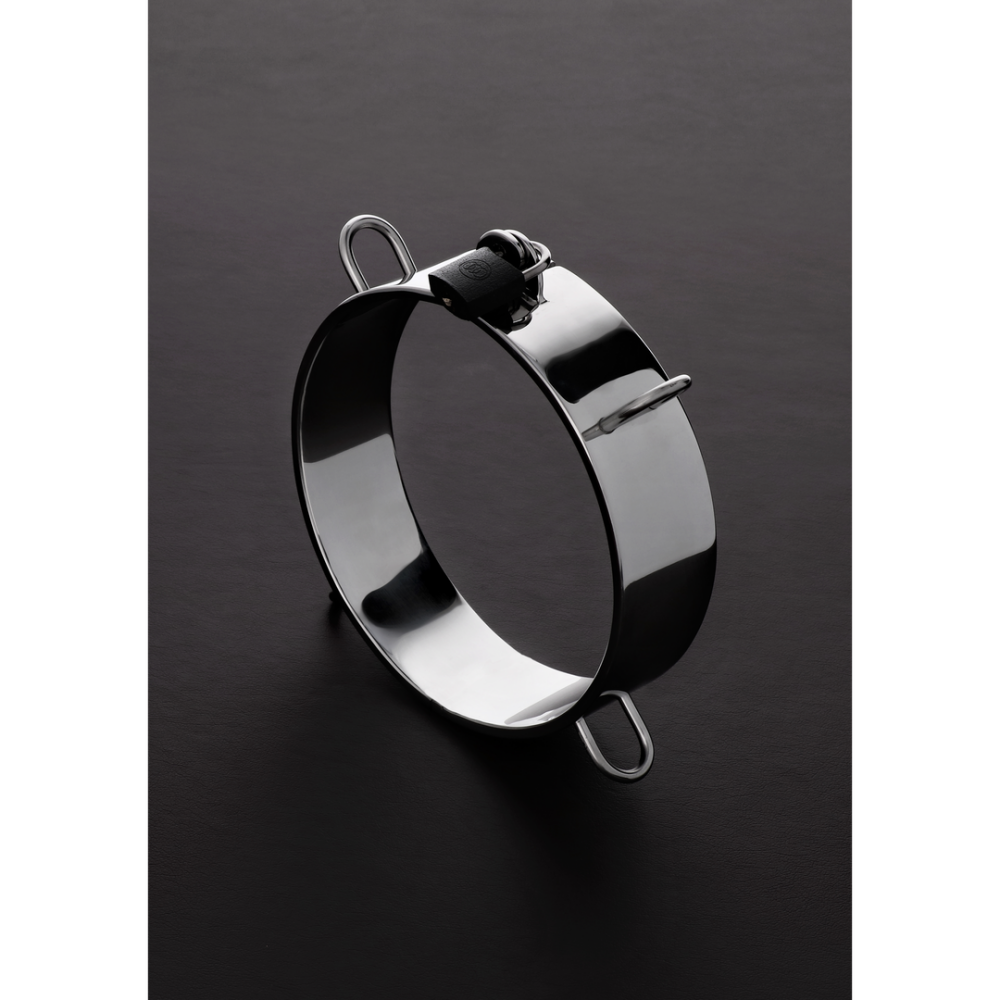 Beschrijving Deze zware Slave Collar is gemaakt van roestvrij staal en heeft een uitstekende kwaliteit. De halsband is voorzien van 4 stalen D-ringen wat je talloze bondage-opties aanbiedt.