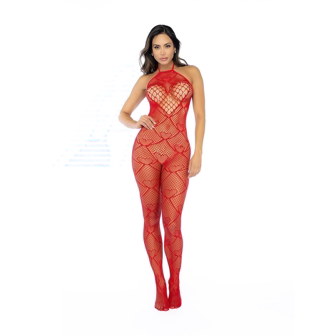 Hart Visnet Bodystocking met Strass Detail - Één Maat - Rood