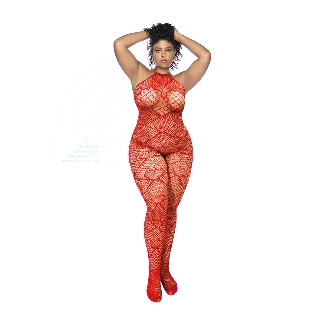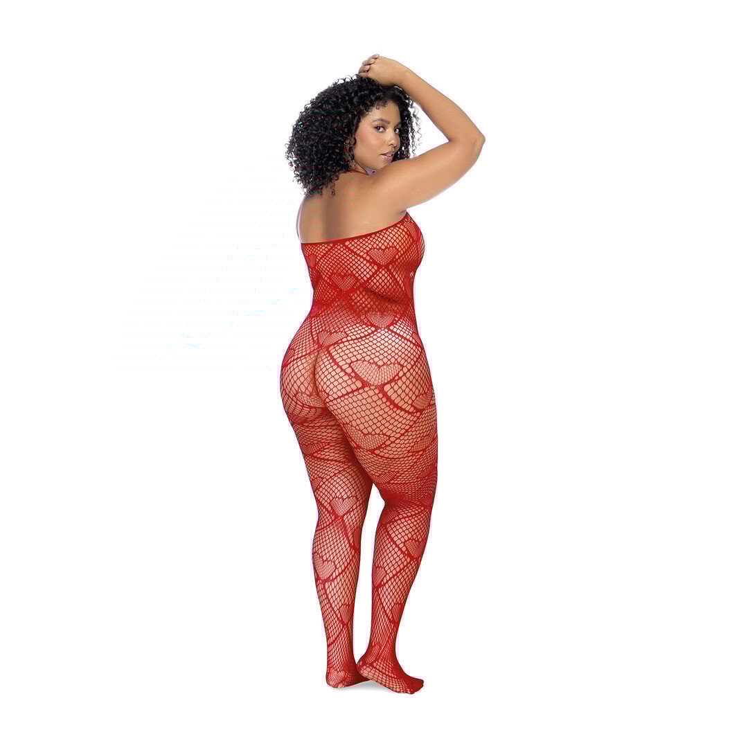 Hart Visnet Bodystocking met Strass Detail - Koning Maat - Rood
