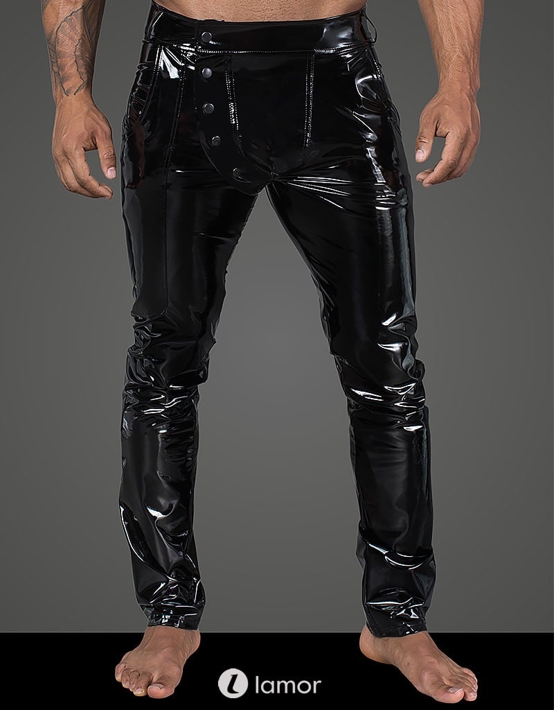 Het elastische, hoogglans lakmateriaal met praktische voorzak is lang en nauwsluitend gesneden en is het toonbeeld van verleiding. De tailleband kan worden aangevuld met een riem dankzij de lussen, terwijl decoratieve ritsen aan de achterkant je billen scherpstellen. En als het snel gaat, kunt u zich snel uitkleden met de drukknoppen op de jockstrap.