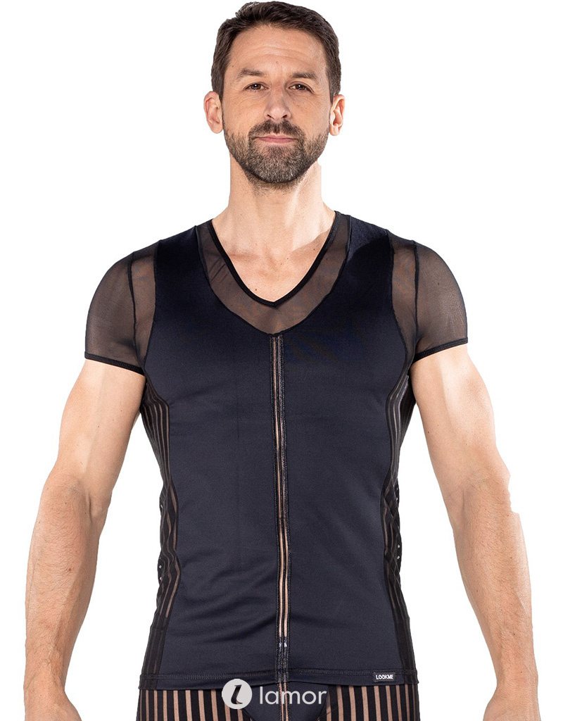 T-shirt gemaakt van een mix van ondoorzichtige stof en fijn mesh-materiaal van het merk Look Me