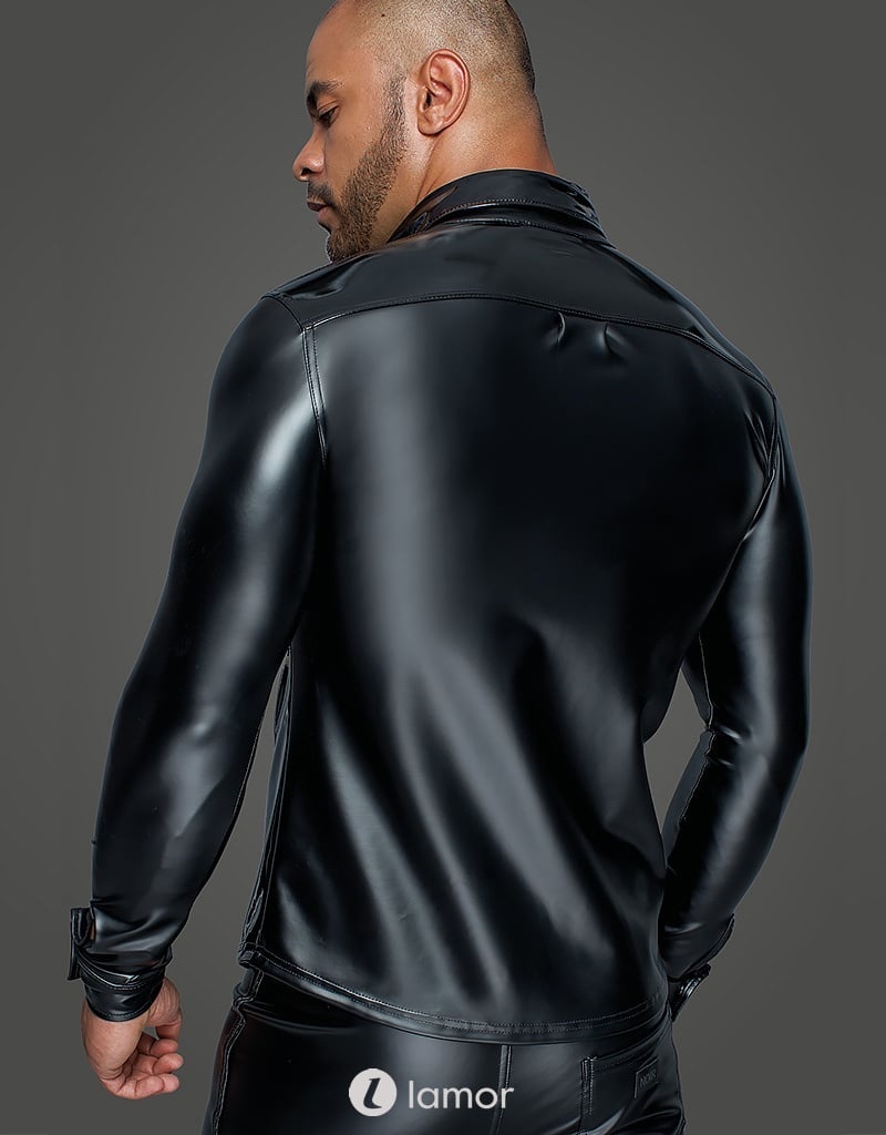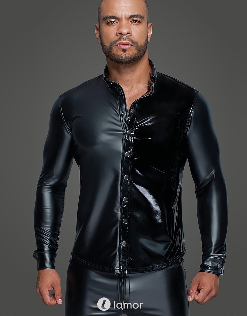Stijlvol Heren shirt wetlook met PVC van Noir Handmade