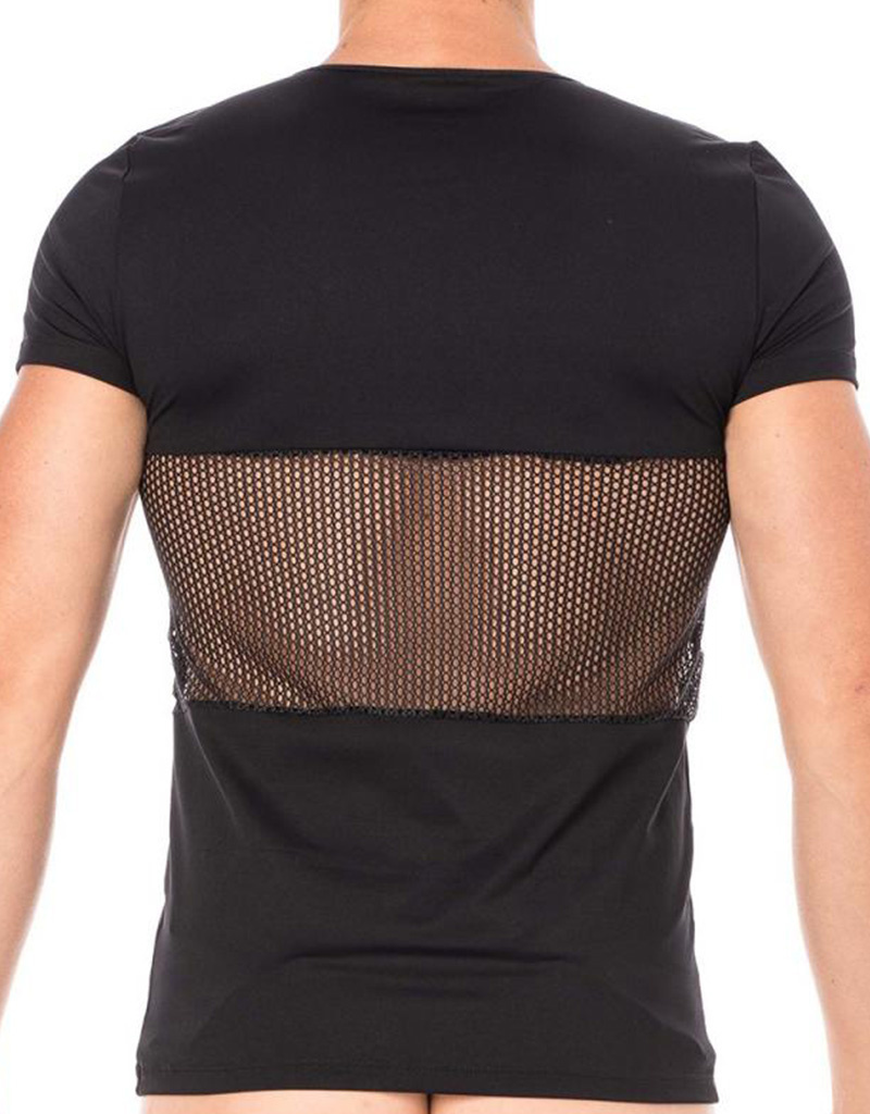 Heren Shirt, combinatie van mesh en een elastische zwarte stof van het merk Look Me
