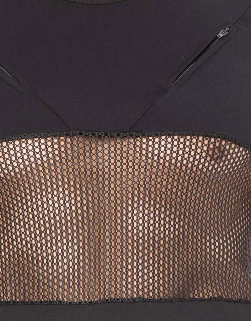 Zwart heren shirt met een zwart horizontale mesh deel met aan voorzijde twee ritsen. Het hoogwaardige elastische materiaal garanderen een goed draagcomfort en een hogere duurzaamheid.