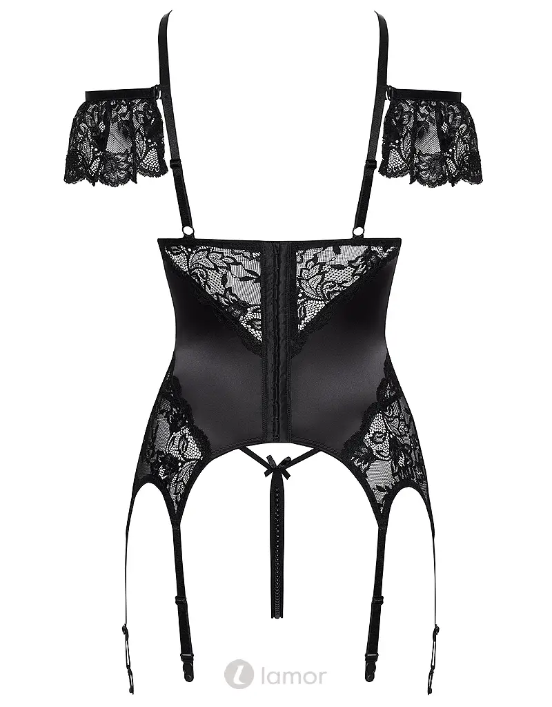 Cottelli Lingerie jarretelkorset ouvert set met parels en string