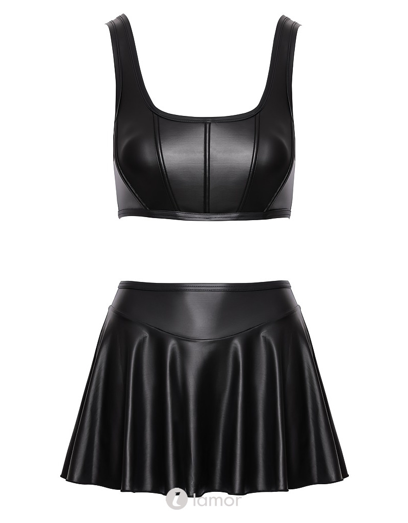 Mattlook korset-top met minirok set zwart – Cottelli Party