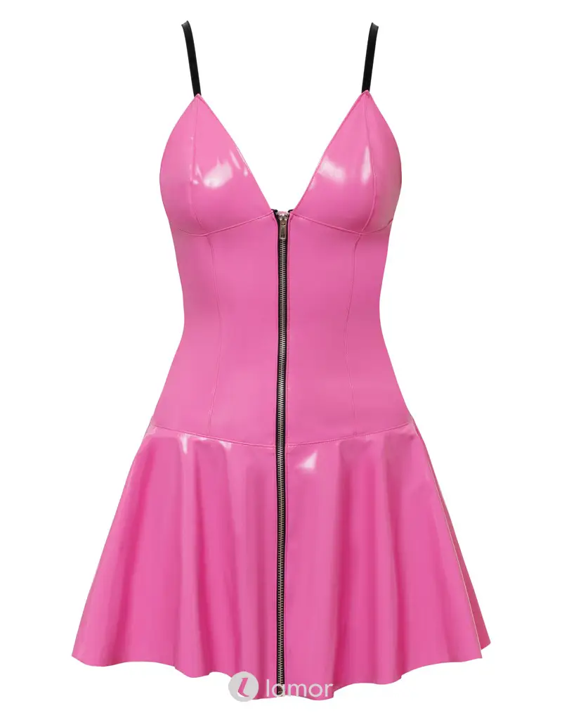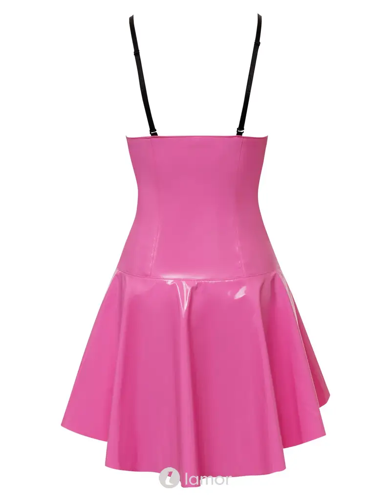 Black Level lak jurkje pink met rits en asymmetrische rok
