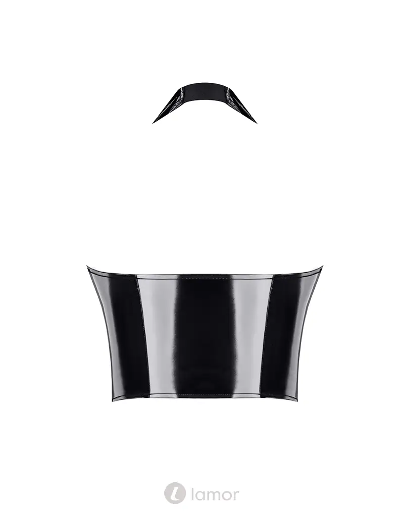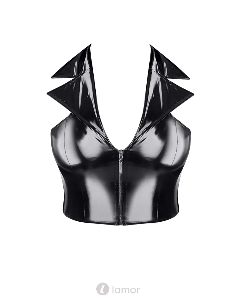 Demoniq lak dames top met rits en diep decolleté zwart TDMelania001