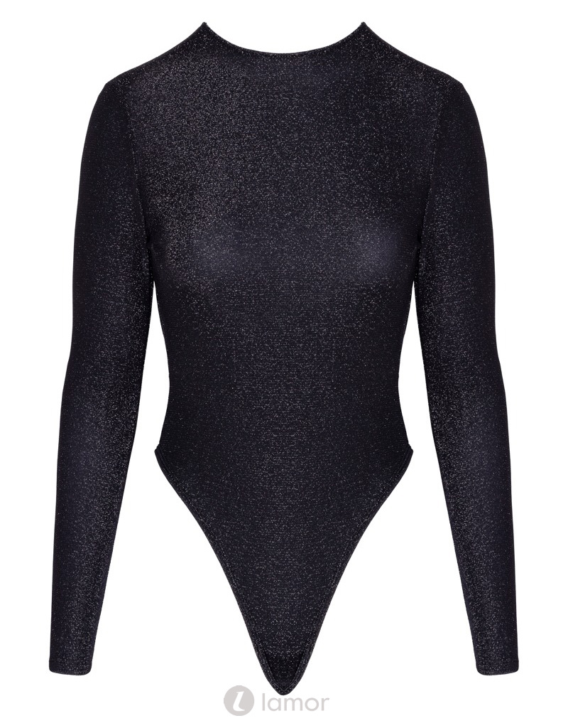 Glamoureuze langarm-body in zwart met zilverglittervan van Cottelli Party