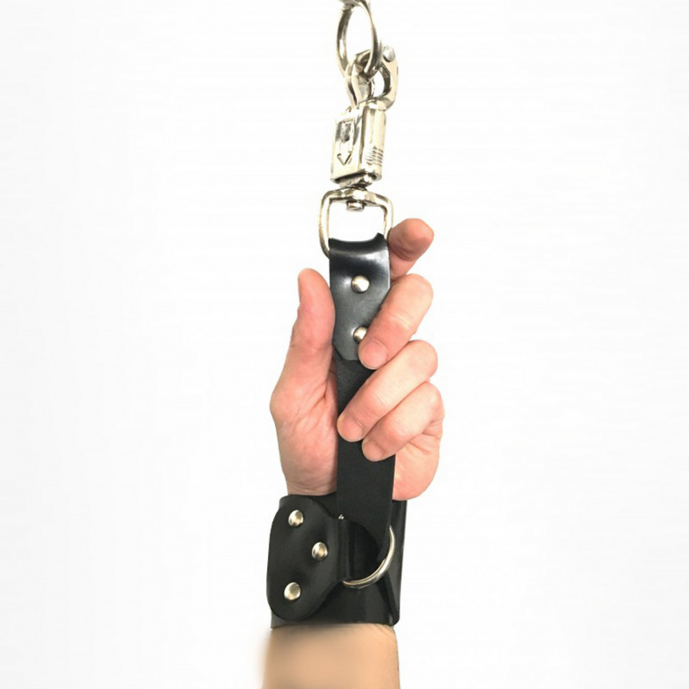 Leren Handboeien met Anti-Panic Karabijnhaak - Zwart