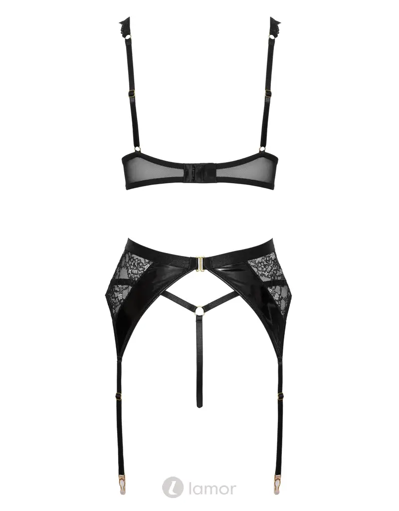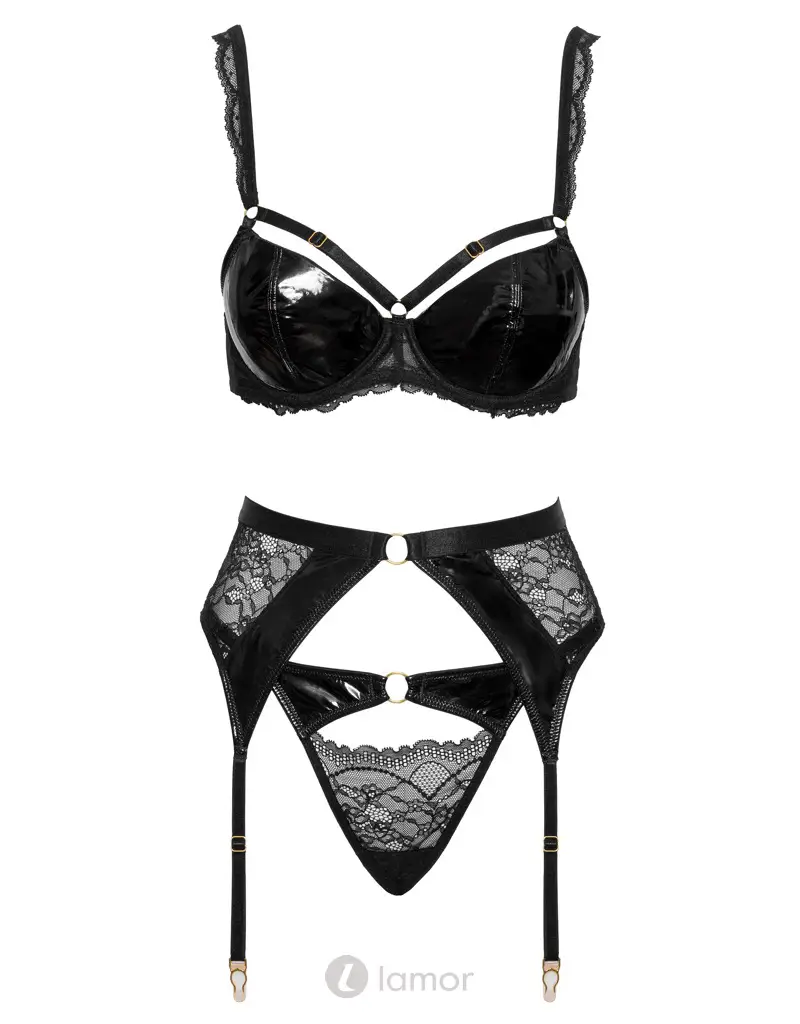 Cottelli LINGERIE Lak En Kant Lingerie Set Zwart 3 Delig