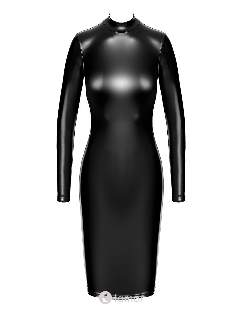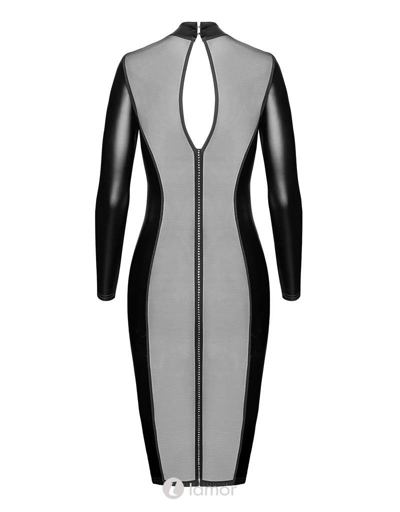 F371 Luxuria Crystal Back Sheer Midi Jurk van Noir Handmade – Powerwetlook jurk met transparante rug en strass details