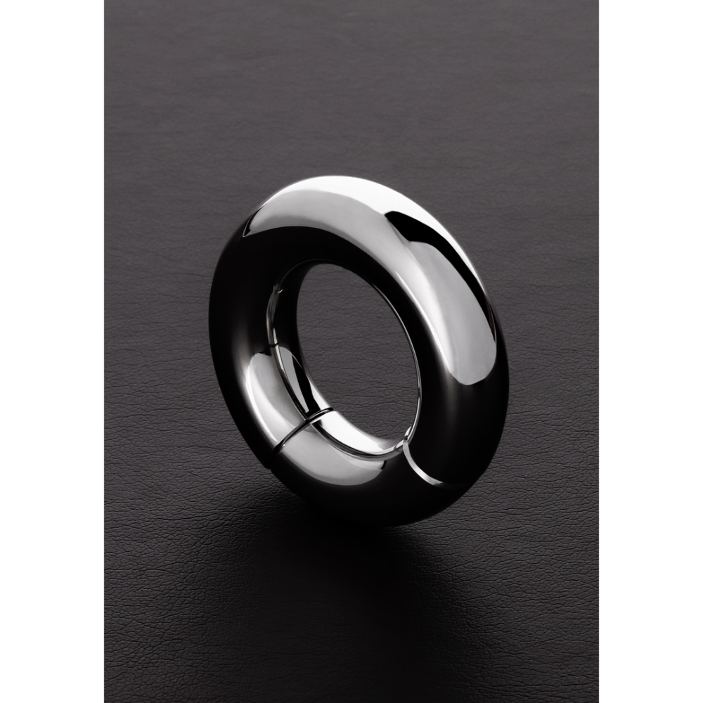 Beschrijving Eenvoudig concept en uitvoering. Krachtige magneten die het speeltje op zijn plaats houdt en een verwijderbare wig. Maak de wig los, schuif je scrotum door de opening en bevestig de wig opnieuw. De sterke magneten houden de ring stevig samen - klaar! Geen gereedschap of inbussleutels nodig. Natuurlijk komt hij net zo snel uit, handig als je haast hebt. De ring is gemaakt van hoogglans gepolijst roestvrij staal. roestvrij staal is vrijwel onverwoestbaar en is gemakkelijk schoon te maken - een product voor de eeuwigheid.