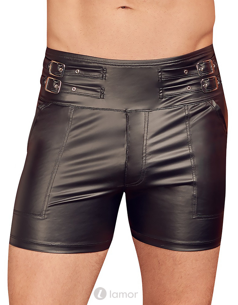 Exclusief ontwerp met hoge taille! Zwarte short van NEK in trendy matte look met extra hoge tailleband met aan weerszijden twee verstelbare gespriemen. Aan de voorkant met een praktische, erotische onderlegde ritssluiting die open kan. Heerlijk elastisch voor uitstekend draagcomfort. .