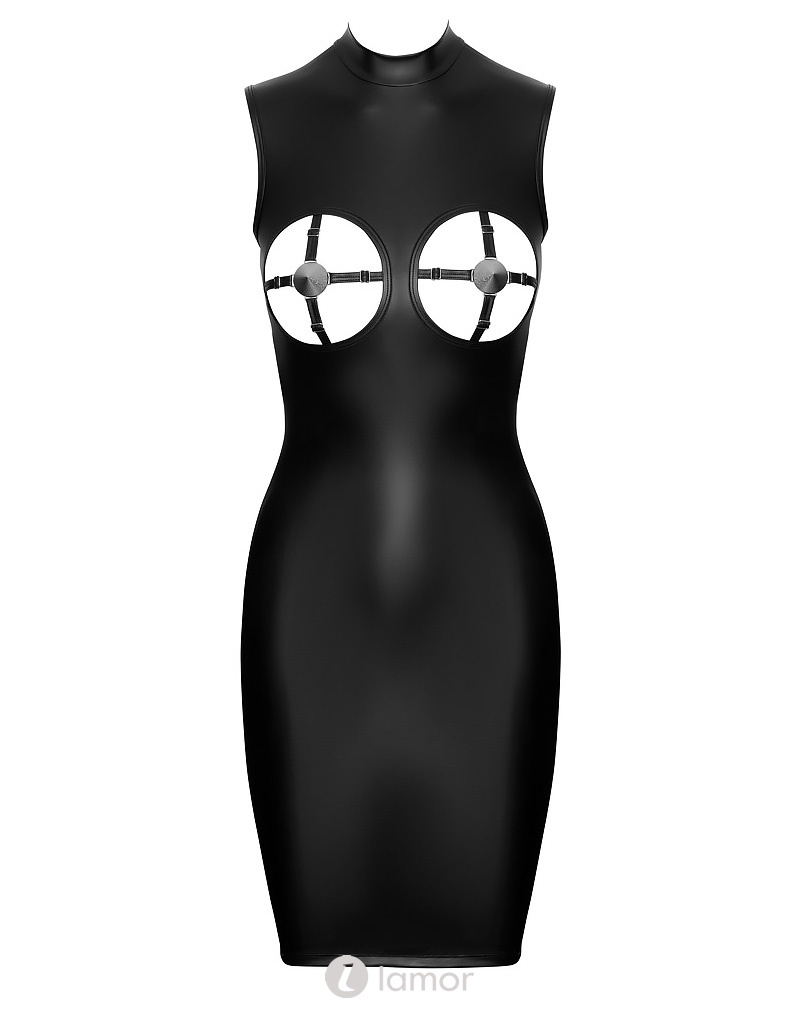 Zwarte mattlook jurk met open borsten– Cottelli Party