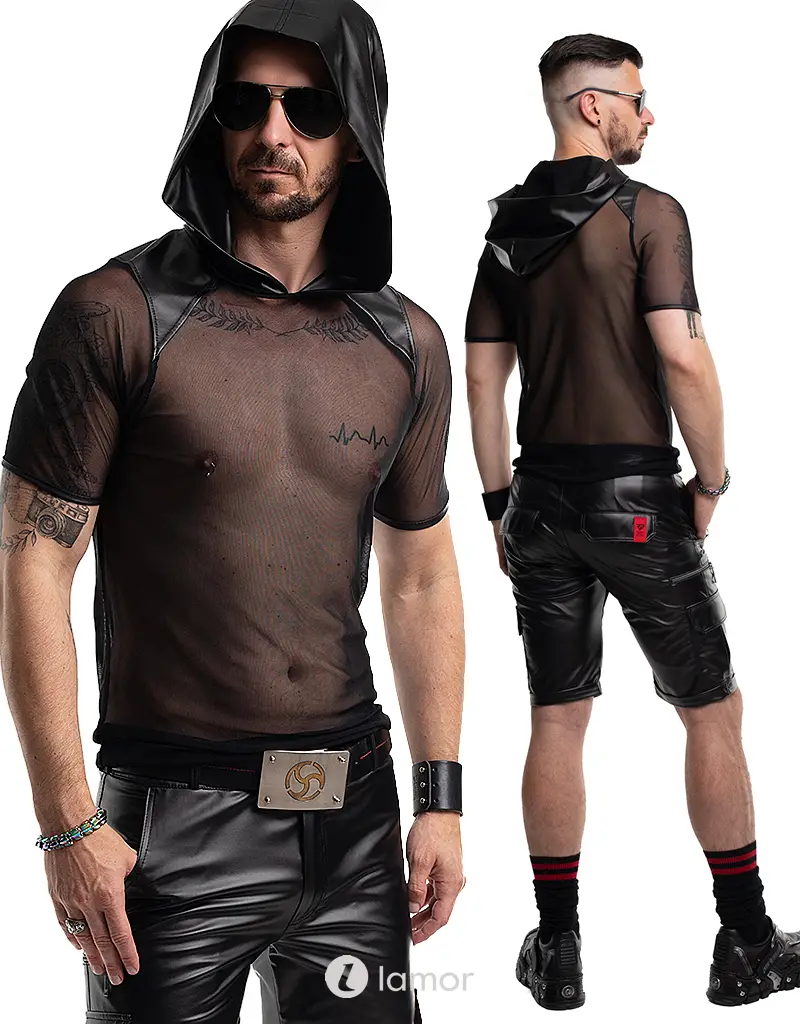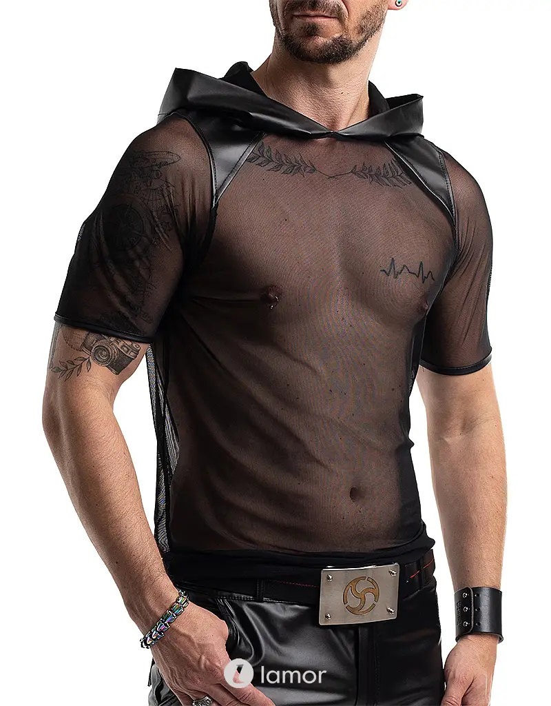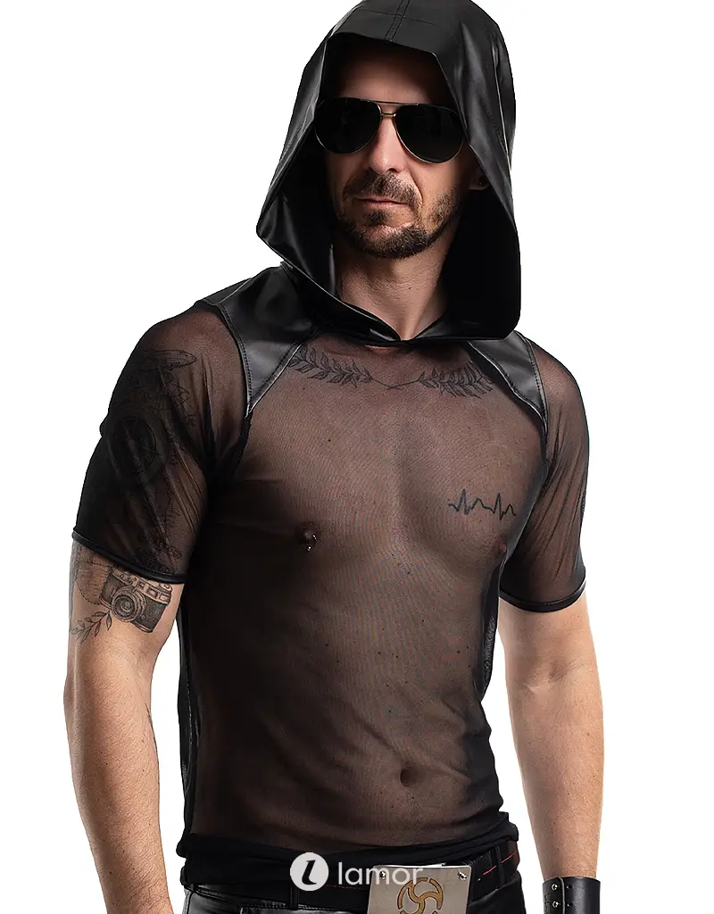 RFP mesh hoodie shirt zwart met capuchon slim fit