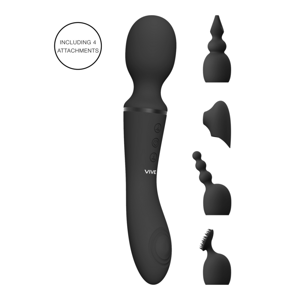 Beschrijving NAMI is een nieuwe draai aan onze dubbelzijdige VIVE019 massage vibrator. Met twee nieuwe generatie F1-motoren met 10 functies en zijn geavanceerde technologieën (de twee motoren kunnen onafhankelijk worden bestuurd) is deze toy simpelweg waanzinnig. Een innovatieve NG F1 pulsgolfmotor met 10 functies voor uw G-spot, een NG F1 vibratiemotor met 10 functies voor stimulatie van de clitoris (massagestaaf). Bovendien wordt de VIVE39 geleverd met vier hulpstukken voor nog meer speelplezier. Drie worden gebruikt met de staafkop voor directe clitorisstimulatie en één voor gebruik met de basis G-Spot Pulse-Wave-motor om een ​​Touchless Air-Waves-technologie te creëren die een zuigstimulatie voor je clitoris creëert. Combineer de twee nieuwe generatie F1-motoren met 10 functies met mogelijk 100 verschillende standjes plus alle extra hulpstukken en het plezier is eindeloos. Het speeltje is gemaakt van 100% zijdezacht siliconen van medische kwaliteit (hypoallergeen), volledig waterdicht (IPX7) en extreem stil met minder dan 60 dB. Dit betekent dat je hem overal kunt gebruiken waar je hartje begeert! De lithium-ionbatterij van het speeltje word opgeladen middels de magnetische USB aansluiting. Wanneer hij volledig is opgeladen, biedt hij 40 minuten aan gepassioneerde speeltijd. Zo simpel: aansluiten, opladen en heerlijk spelen! Alle VIVE-vibrators worden geleverd met een volledige garantie van 1 jaar.