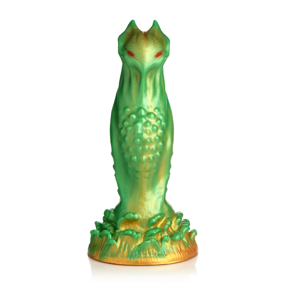 Deze schattige Andromeda-alien heeft de perfecte grootte om in je meest intieme plekken te kruipen! Groene en gouden huid glanst wanneer het licht erop valt. Twee smalle, rode ogen kijken je aan met een dreigende blik. Het hoofd heeft kleine, zachte oren, een smal gezicht en een hobbelige, grote borst die de dong in het midden doet zwellen. Het is textuur voor jouw plezier en zal je op nieuwe manieren bevredigen die alleen deze alien kan bieden! Gemaakt van premium, flexibele, ftalaatvrije silicone, is deze dong lichaamsveilig en het beste te gebruiken met alleen op water gebaseerde glijmiddelen. Geniet van handsfree ritten dankzij de sterke zuignapbasis! Nodig een partner uit om te genieten van kinky cosplay of fantasierolspel en gebruik hun favoriete harnas om deze dong in een strap-on te transformeren! Zorg ervoor dat je het daarna wast met warm water en milde zeep, spray het vervolgens met een speelgoedreiniger en laat het aan de lucht drogen. Houd het uit direct zonlicht en hitte. Na meer dan 2,5 miljoen lichtjaar reizen naar de Andromedastelsel, is jouw team geland op een vreemde planeet. Voor de eerste keer zet je voet op een nieuwe planeet die vol leven is. Je ruimtepak vertelt je dat de lucht ademhaalbaar is, vol zuurstof en stikstof, en je haalt je helmen af en ademt het in. Het maakt je een beetje licht in je hoofd het is een tijdje geleden dat je de lucht van een planeet kon inademen in plaats van gerecycled lucht op een schip of uit een zuurstofcan. Je teamleider geeft een signaal om op te splitsen en te verkennen, maar om de communicatie aan te houden. Je neemt de westelijke richting. Al snel vind je iets dat je sinds je op aarde was niet meer hebt gezien een kleine vijver met kristalhelder water. Je gebruikt je pak om het water te testen en tot je verbazing is het veilig en schoon! Opgewonden trek je je pak uit en leg je het voorzichtig aan de kant van de vijver. Een duik in het water kan geen kwaad, denk je. Het water is warm en de mosachtige oevers in de schaduw zijn hemels. Je begint te drijven. Je voelt je euforisch door de hoge zuurstof in de lucht. Iets beweegt in het water en je wordt abrupt wakker. Terwijl je naar de oevers van de vijver kijkt, zie je kleine, groene wezens die eruitzien als kleine draken. Ze komen omhoog uit het mos alsof ze er deel van uitmaken. Rode ogen gloeien en knipperen en hun kleine hoofden wiebelen terwijl hun oren in jouw richting trillen. Je reikt uit om er een aan te raken en het voelt nat aan terwijl het zich in je hand kronkelt. Niemand is in de buurt en deze kleine wezens beginnen te kronkelen en dichter bij je lichaam te komen. Je laat ze kronkelen en dichterbij komen en terwijl ze je aanraken, voel je golven van extase door je lichaam bewegen. Je logische brein probeert je te waarschuwen, maar je lichaam voelt zo geweldig dat je de waarschuwing negeert. Je voelt iets tussen je dijen glijden en voordat je het kunt stoppen, glijdt het naar binnen en het gevoel is pure gelukzaligheid! Je begint te kreunen van genot, steeds luider, je lichaam rolt in golven bij elke climax! Afmetingen: Totale lengte: 19,3 cm. Invoerlengte: 15,9 cm. Smalste invoerdiameter: 4,3 cm. Breedste invoerdiameter: 5,8 cm. Materialen: Silicone Kleur: Groen, goud, rood Opmerking: alleen gebruiken met op water gebaseerde glijmiddelen voor de beste resultaten. Belangrijkste kenmerken: Fantasie Dildo: Deze kleine alien verandert in de perfecte dong voor jouw plezier! Vervormd met zachte, puntige oren, een smal gezicht met kleine rode ogen, en een hobbelige borst die de dong in grootte doet zwellen nabij het midden, is dit alien wezen een leuk ritje! Zuignapbasis: Geniet van de brede, zuignapbasis van deze dildo. Druk eenvoudig stevig op een vlakke ondergrond en geniet van handsfree rijden! Harnas Compatibel: De brede, flensbasis is compatibel met de meeste strap-on harnassen, zodat jij of een partner de dildo kan dragen en de fantasie volledig tot leven kan brengen! Premium Silicone: Gemaakt van lichaamsveilige, ftalaatvrije, premium silicone.
