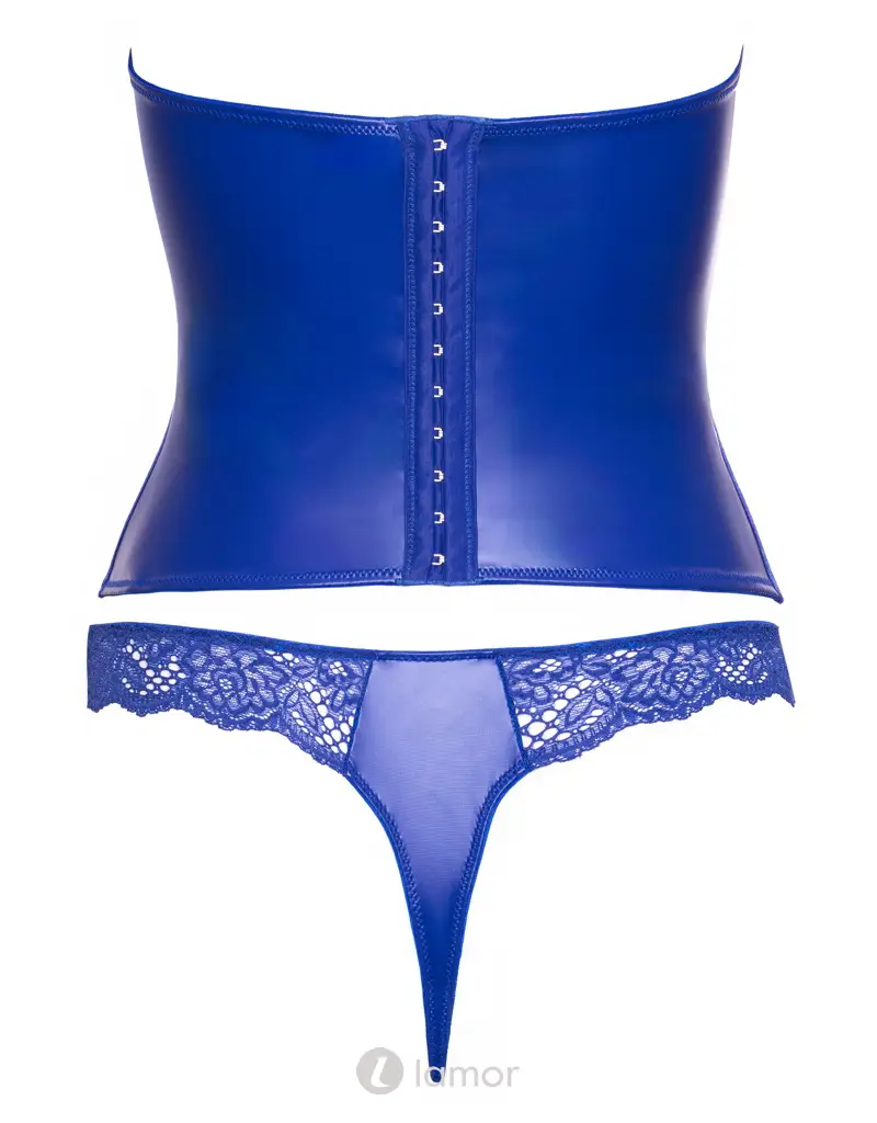Cottelli LINGERIE Open Cup Corsage En String Set Blauw