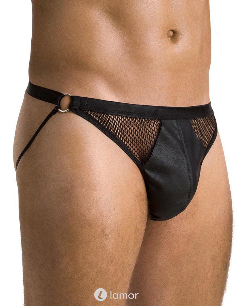 Ontdek de verleidelijke en gedurfde stijl van de Sexy heren Jockstrap van Passion Menswear. Deze jockstrap is ontworpen om je zelfvertrouwen te vergroten en je look naar een nieuw niveau van sensualiteit te tillen. Met zijn combinatie van mat imitatieleer en mesh-materiaal zorgt deze kruisloze slip voor een intrigerend contrast.De jockstrap is voorzien van elastische banden en twee metalen ringen, wat een speels en uitdagend accent toevoegt aan het ontwerp. Het elastische materiaal zorgt voor een comfortabele pasvorm, terwijl de metalen ringen een vleugje stoerheid en verfijning geven. Ervaar de ultieme sensualiteit met de Sexy heren Jockstrap van Passion Menswear. Laat je verleidelijke kant zien en geniet van een onvergetelijke ervaring met deze gedurfde en sexy creatie.