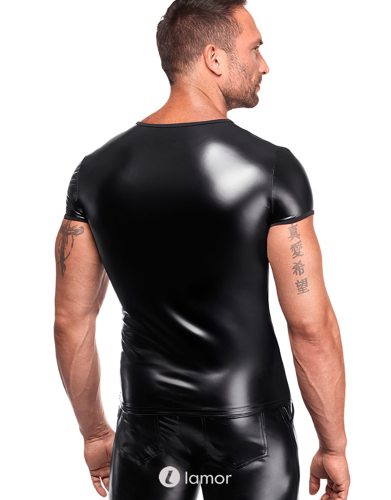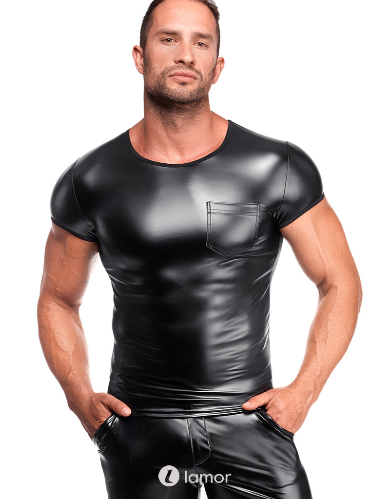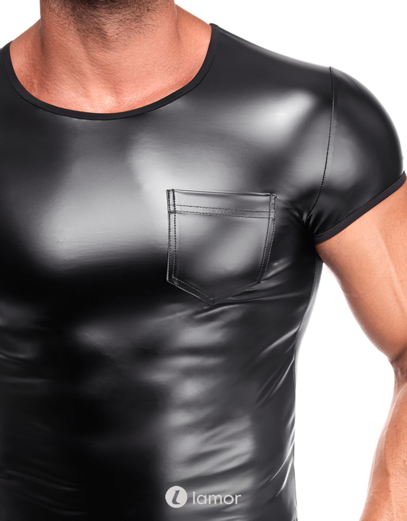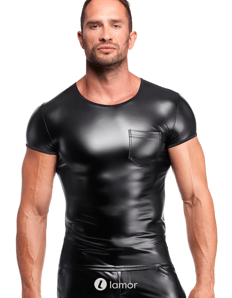 Noir Handmade powerwetlook heren shirt met borstzak zwart