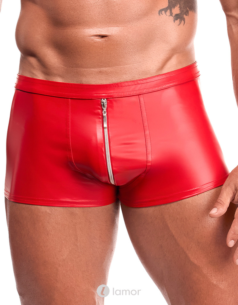 Noir Handmade rode powerwetlook shorts met lange zilveren rits