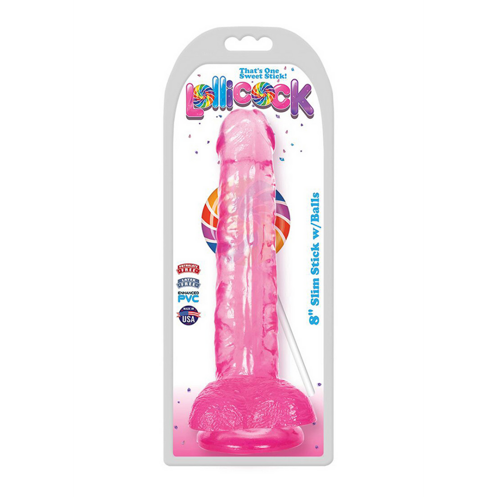 Slim Stick Cherry Ice - Dildo met ballen - 8 / 20,5 cm