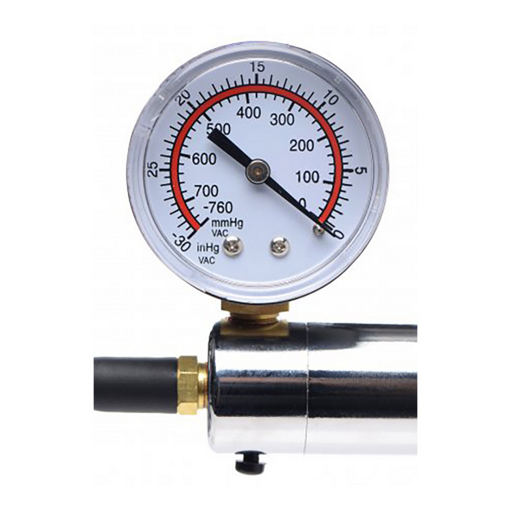 Pomp de boel op! Deze penispompset heeft een transparante cilinder van 9 inch met meetmarkeringen, zodat u uw voortgang met elke pomp kunt volgen. De brede lipbasis zorgt voor een goede afdichting, terwijl de flexibele slang en het snelontgrendelingsventiel het gemakkelijk maken om de pomp te manoeuvreren en los te laten wanneer je klaar bent om te spelen. De ergonomische handpomp wordt geleverd met een grote manometer, zodat u de hoeveelheid druk kunt vinden die het beste bij uw pakket past. Deze pompset is perfect voor diegenen die een meer gevoelige en langdurige erectie willen - gebruik je favoriete cockring om je nieuwe opgepompte schacht te onderhouden! Afmetingen: Totale lengte 9 inch, diameter opening 2 inch, slanglengte 10,25 inch Materialen: metaal, acryl, ftalaatvrije siliconen Kleur: transparante penispompset met 2 inch cilinder Specificaties: Verbeter uw erectie: alles wat u nodig hebt om uw pakket te pompen is inbegrepen - verhoog de bloedstroom naar uw schacht om de duur en gevoeligheid van uw erectie te verbeteren Observeer uw groei: de transparante cilinder is voorzien van meetmarkeringen zodat u uw voortgang kunt volgen, terwijl de brede basis bij de opening van de cilinder zorgt voor een veilige afdichting Ergonomische handpomp met manometer: De handpomp met gemakkelijke grip maakt het gemakkelijk om lucht uit de kamer te persen houd de manometer in de gaten om het zuigniveau van uw voorkeur te vinden Snel en eenvoudig ontgrendelingsventiel: koppel de slang los met het snelontgrendelingsventiel het eenvoudige ontwerp maakt het gemakkelijk om de slang los te maken en weer vast te maken terwijl je speelt