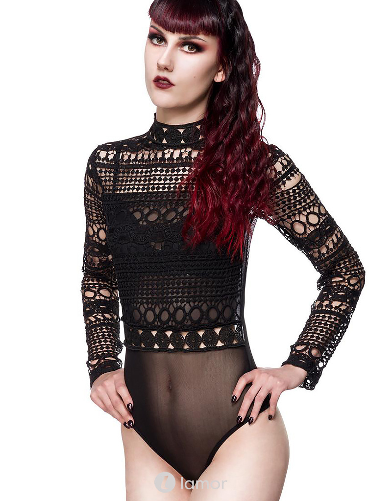 Spannende zwarte kanten Gothic body van Ocultica